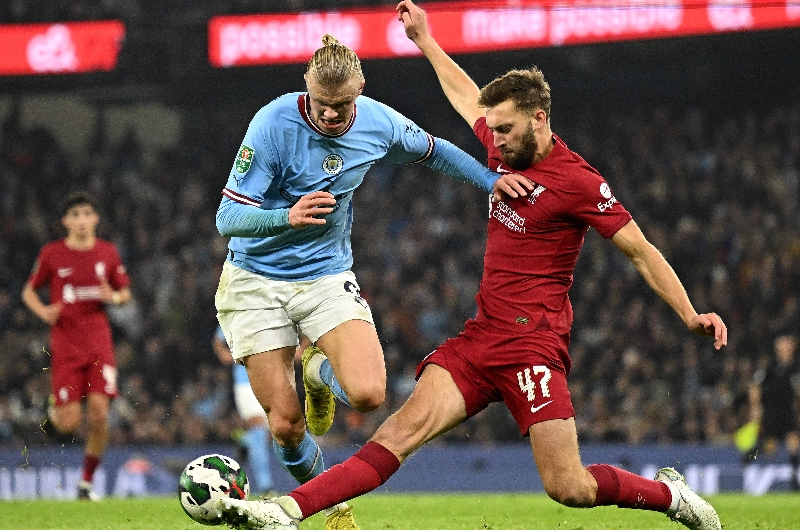 Manchester City and Liverpool in action in the EFL Cup 2022. (Getty Images)